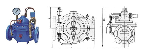 600X水力電動控制閥由主閥、電磁導閥、針閥、球閥、微形過濾器和壓力表組成水力控制接管系統。通過電磁導閥可以實現對閥門開啟和關閉的遙控。加裝附加裝置后,可控制開啟和關閉的速度。