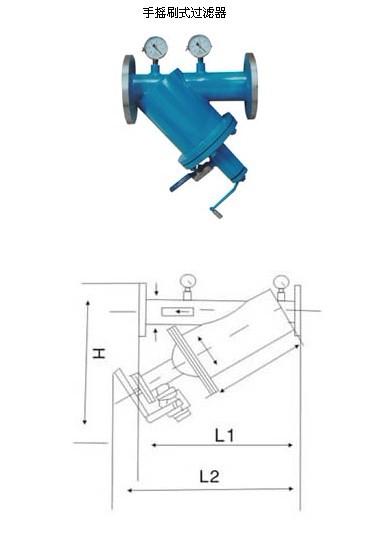 手搖刷式過濾器結構合理,用材講究,殼體采用優質碳鋼,也可根據用戶要求采用不銹鋼;有機毛刷采用無機材料制成(彈性好,強度較高,耐蝕及耐老化性能優)和不銹鋼刷架組成;濾網為精心制作不銹鋼楔形網,結構講究,十分便于刷去雜物,過濾、清洗效果大大優于沖孔網或紡織網,且洗網時刷毛不易損傷。使用時只需輕輕轉動刷架外部的手柄即可。