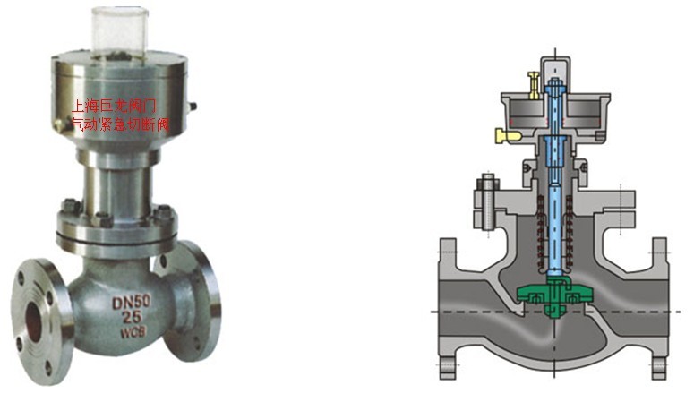 本閥是一種安全保護閥,安裝在液化石油氣(燃氣),液相與氣相管路上,與遠距離氣源配套使用,利用氣源控制閥門開啟-關閉,以便在管道或儲罐上發生大量泄漏甚至起火時,快速手動使氣源卸壓,或高溫≥75%%p5C%%D時易熔合金熔化,而氣缸自動卸壓,閥門迅速關閉而止漏,起安全保護作用。